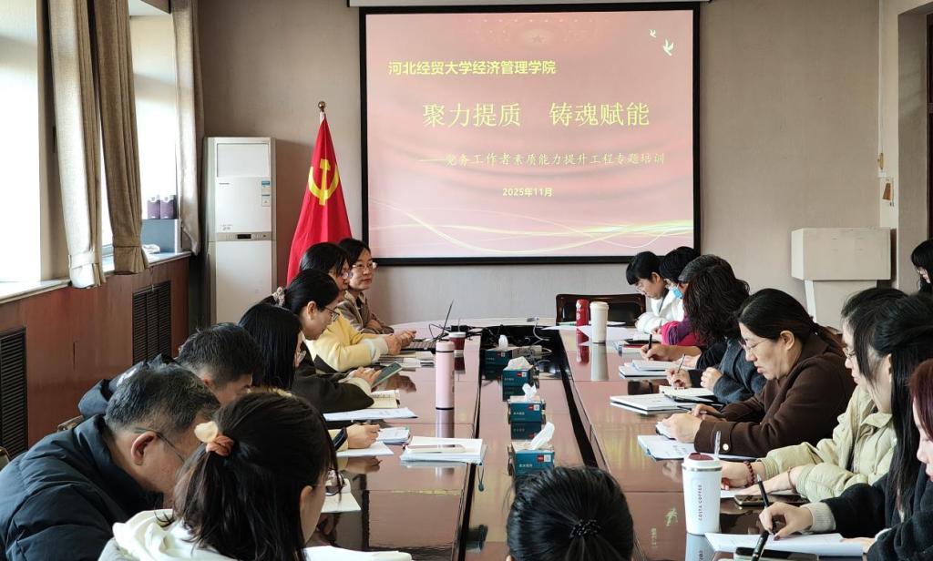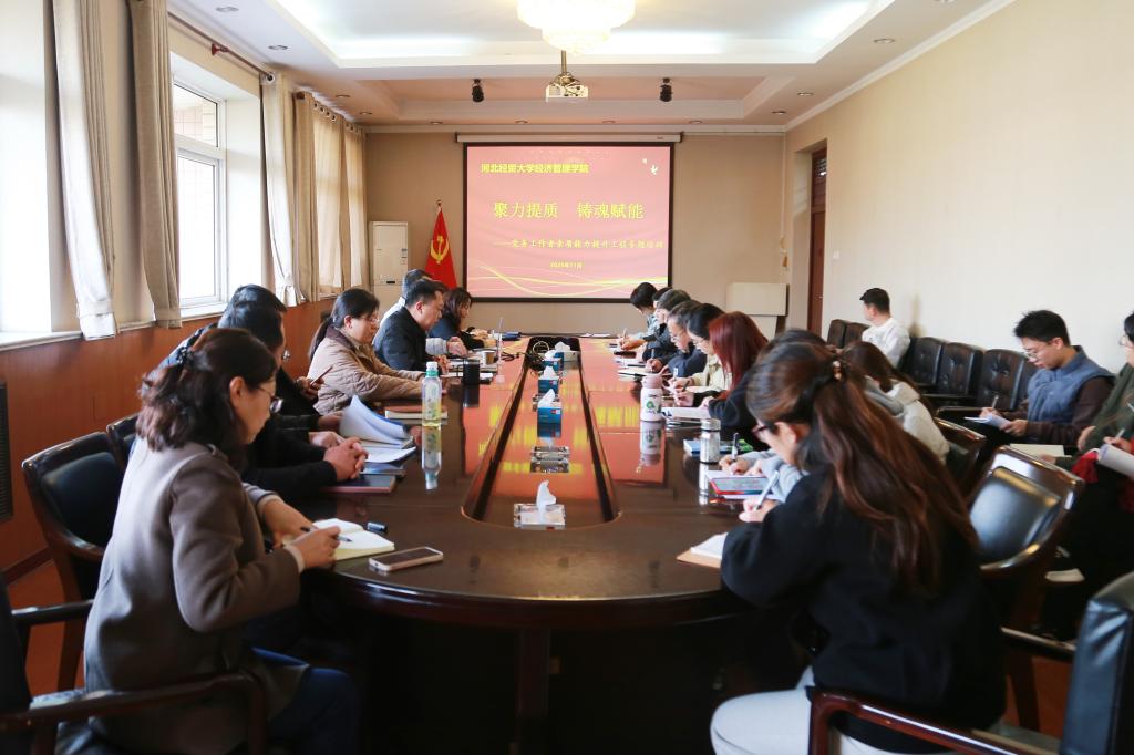 面向基层党务工作需求,举办了两场党务工作者素质能力提升专题培训。培训班分别邀请河北经贸大学党委组织部组织科科长李珊珊、马克思主义学院副院长、省级样板党支部书记马鑫担任主讲。学院各基层党组织书记、委员及专职组织员参加培训。至此,本年度党务工作者素质能力提升2.0系列培训圆满收官。