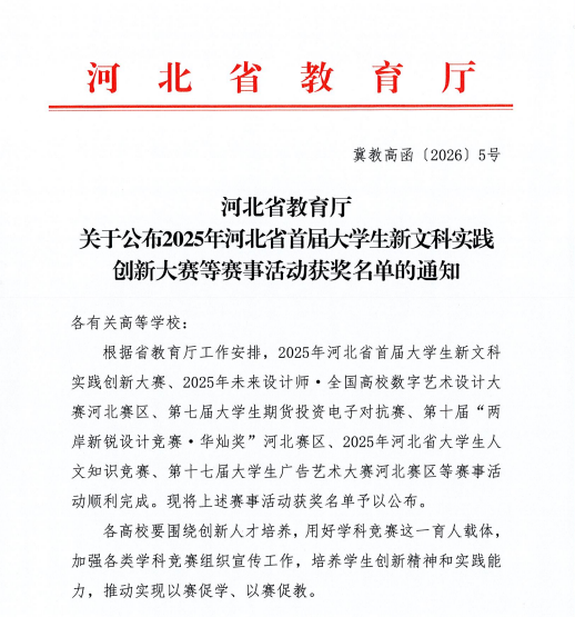 近日,河北省教育厅公布2025年河北省首届大学生新文科实践创新大赛获奖名单。由不雅视频