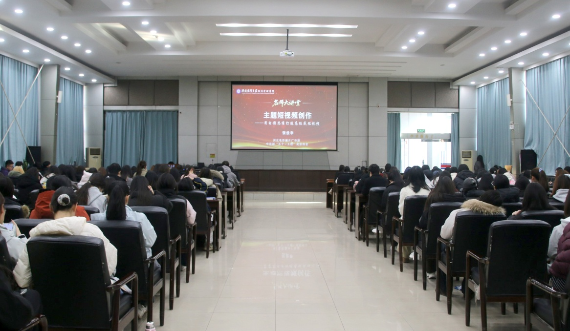 “名师大讲堂”特邀北京电影学院摄影系硕士、资深电影导演兼摄影师张佳辛为学生作题为《主题短视频创作——用电影思维打造高级感短视频》的学术讲座。讲座由院宣传部副部长郑廷主持,我系新闻广电专业200余名学生参加。
