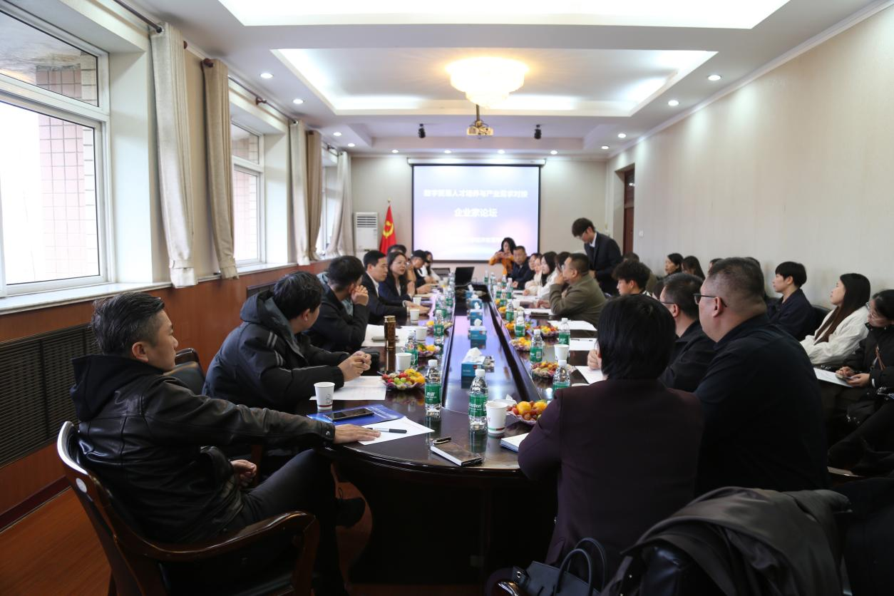 于10月29日下午在五楼会议室召开“数字贸易人才培养与产业需求对接” 企业家论坛。衡水市商务局副局长刘芸,阿里巴巴国际站(冀南)本地渠道商总经理王朝军、32 家数字贸易相关企业代表和学院各系负责人齐聚一堂,共话人才培养与产业发展深度融合之道。论坛由学院副院长王鸿喜主持。