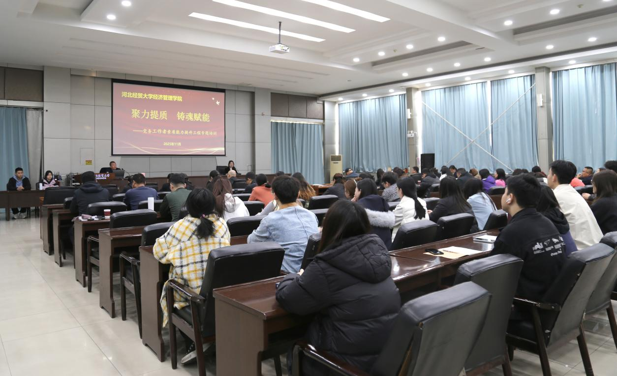 “聚力提质、铸魂赋能”党务工作者素质能力提升2.0培训班正式开班,学院专门邀请西柏坡纪念馆研究部康彦新主任开启首场讲座。学院党政班子成员、院中层管理干部、各系专职组织员、各党支部书记及委员、专职辅导员及学生党员代表参加了培训。