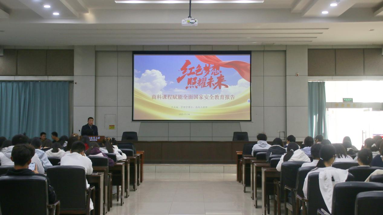“专业赋能国安”系列讲座第四场在图书馆报告厅举办。管理系副主任王文福作题为“红色梦想 照耀未来——商科课程赋能国家安全教育”的专题报告,管理系2025级全体学生参加学习。